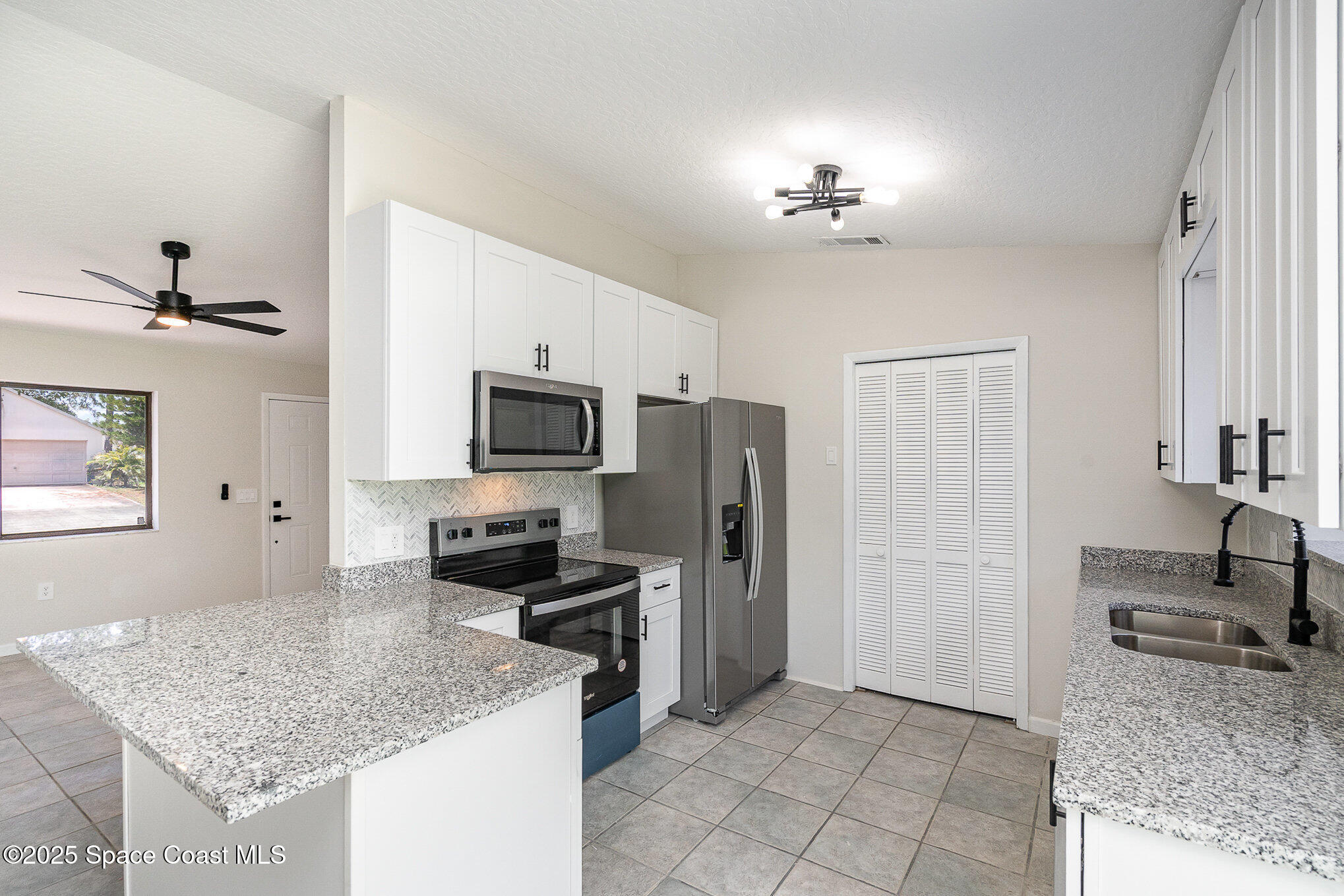 Welcome to a stunning 3 bedroom, 2 bathroom home that perfectly blends style, comfort, and functionality. Sitting on a spacious corner lot with city water/sewer and a rare 3-car garage, this property offers exceptional value and curb appeal. Step inside to discover a completely remodeled interior featuring tile flooring, modern updated bathrooms, and a gorgeous renovated kitchen with stainless steel appliances. A brand-new HVAC system ensures year round comfort and peace of mind. Whether you’re entertaining, relaxing, or working from home, this home checks every box. Don’t miss your chance to own a move-in ready gem in a highly desirable area of Palm Bay!